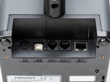 Dostępne w urządzeniu porty umożliwiają równoczesną realizację wielu usług: niezależną komunikację z programem sprzedażowym, odczyt pamięci chronionej, a także współpracę z systemami wideomonitoringu sklepowego. Komunikacja z komputerem zawsze odbywa się on-line bez przerywania pracy kasjera.